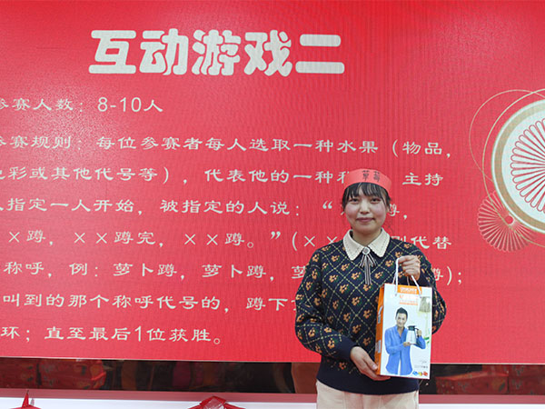 此次年會(huì )節目精彩紛呈、讓人目不暇接。絢麗優(yōu)美的女聲獨唱、優(yōu)雅的男生獨唱,還有五彩繽紛的游戲節目,精彩紛呈。在此期間還穿插了現金紅包獎勵環(huán)節,不斷掀起年會(huì )喜慶的高潮。